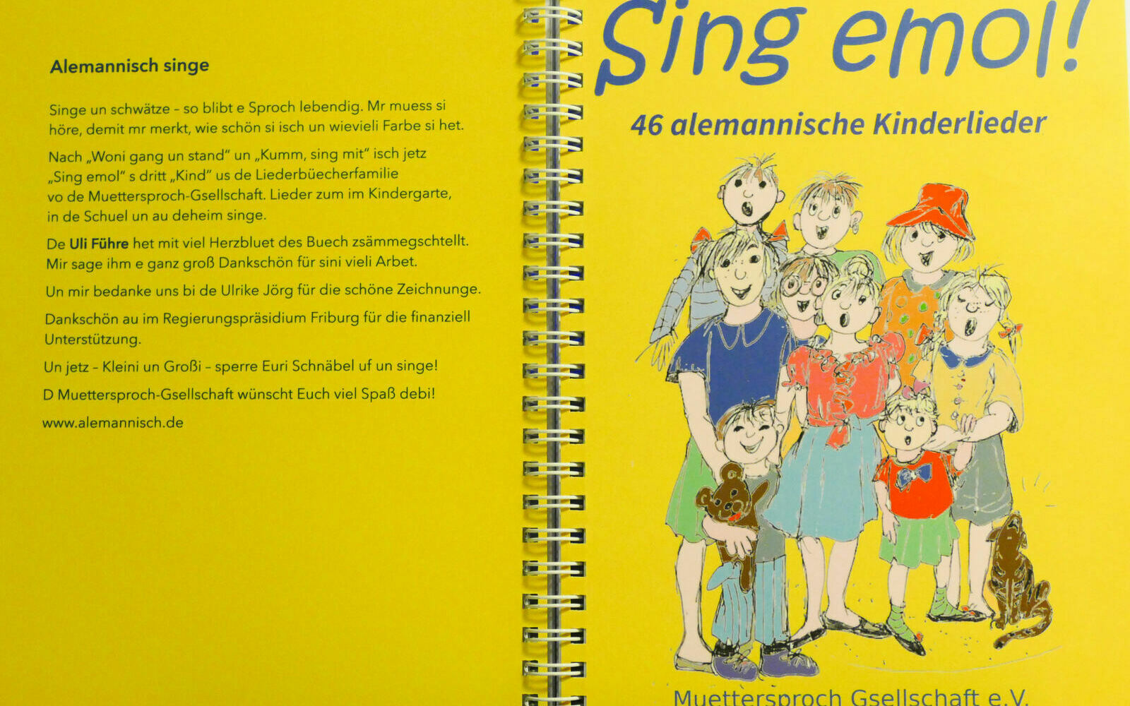 Alli Lieder, wo im unserm Kinderliederbuch stehe, ka mr do ahorche. Mir bedanke uns herzlich bim Uli Führe, wo nit nur s Buech gmacht het, sundern au no durch s Land gfahre isch zum die Lieder ufzneh. S Buech ka mr im Kauflade bschtelle. Dert sin au no Kinderversli un Stabspiel debi. Grundschuele, Kindergärte, Kinderchör könne uns schribe - no kriege sie eins gschenkt.